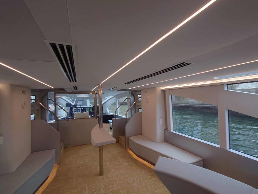 日本橋川沿いエリアのまちづくり『日本橋リバーウォーク』の景観を彩るデザインや高い機能性を備えるとともに、「アーバンドックららぽーと豊洲」に新設した給電設備により、実質ゼロエミッション船(CO2 排出ゼロ)とするなど、高い環境性能も備えている。空・水・風を感じる Well-being な移動体験を提供し、舟運が平時、有事問わず、重要なインフラを担うことを目指す。