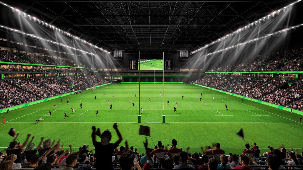 最高のラグビー環境の実現のため日本初の屋内全天候型ラグビー場として、ラグビーの国際大会等の開催が可能な施設水準で約1.5万席を計画。東西スタンドを均等にした「ダブルメインスタンド」と、フィールドコーナー部から試合を体感する観客席「ラグビータワー」、フィールドと同レベルの観客席「フィールドバー」等の快適で多彩な観戦体験を支える環境を整えると同時に、観客に包まれる感覚が選手に高揚感を提供。
