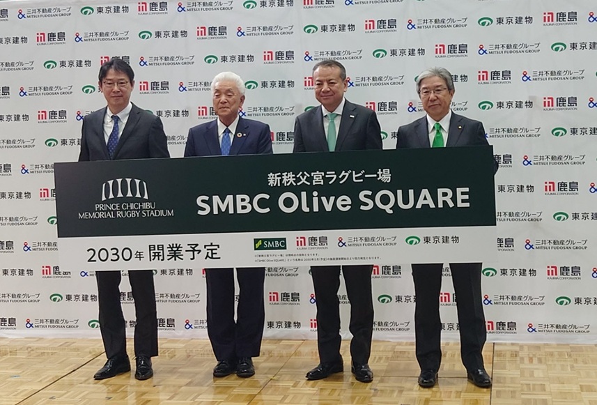 鹿島建設株式会社を代表企業として、三井不動産株式会社、東京建物株式会社、株式会社東京ドームの 4 社が構成企業となる「秩父宮ラグビー場株式会社」は、東京都新宿区において「新秩父宮ラグビー場」を2026年2月3日に着工した。開業予定は、2030年。4 駅4路線が利用可能な都心好立地で、国内初の屋内全天候型多目的ラグビー場(ラグビー開催時:約1.5万人収容)が誕生する。多彩な観戦体験を支える環境を整備し、ラグビーの試合に加え、音楽コンサートを中心とした各種イベントの開催も予定(イベント時:約2.5万人収容)。また、トップパートナーとして三井住友フィナンシャルグループが決定し、副名称は「SMBC Olive SQUARE」となる。