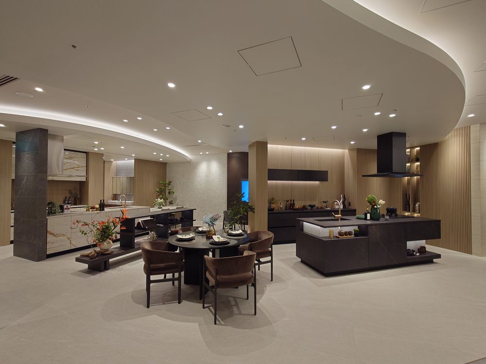 店舗内には、注文住宅やリフォームで取り扱っている高品質なオリジナル住宅設備を一堂に展示。その他、ラウンジやVIPルームなどを用意し上質な空間で住まいを提案する。